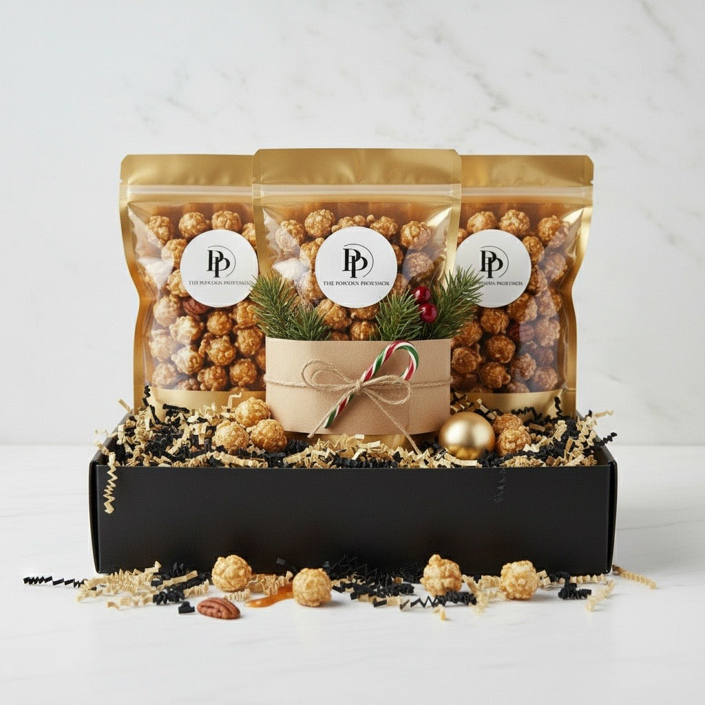 Discover The Professor Pick 3 bundle, the perfect choice for popcorn lovers who want variety and flavor in one order. This customizable bundle allows you to pick any three of our gourmet popcorn flavors, ranging from sweet to savory, including fan favorites like Caramel, Cheese, and Birthday Party.