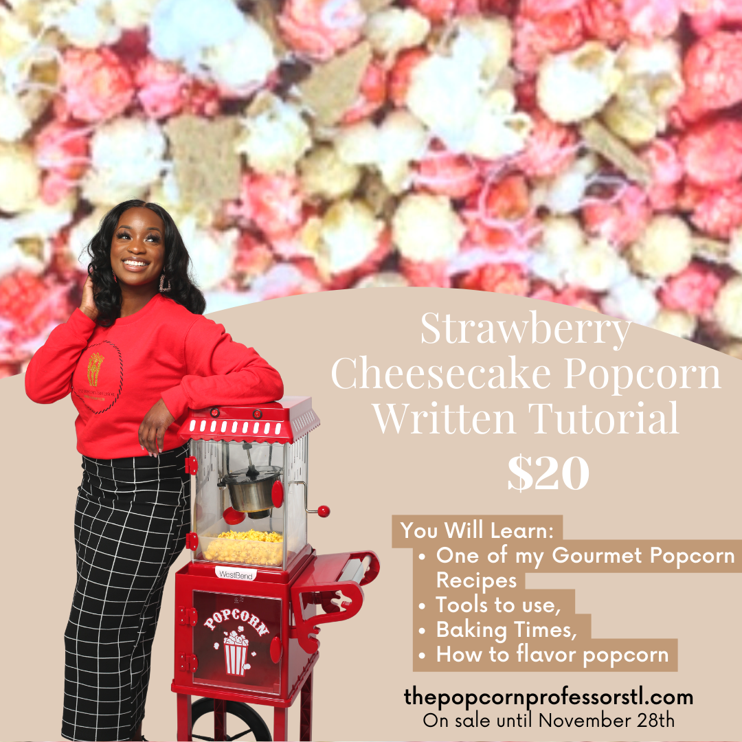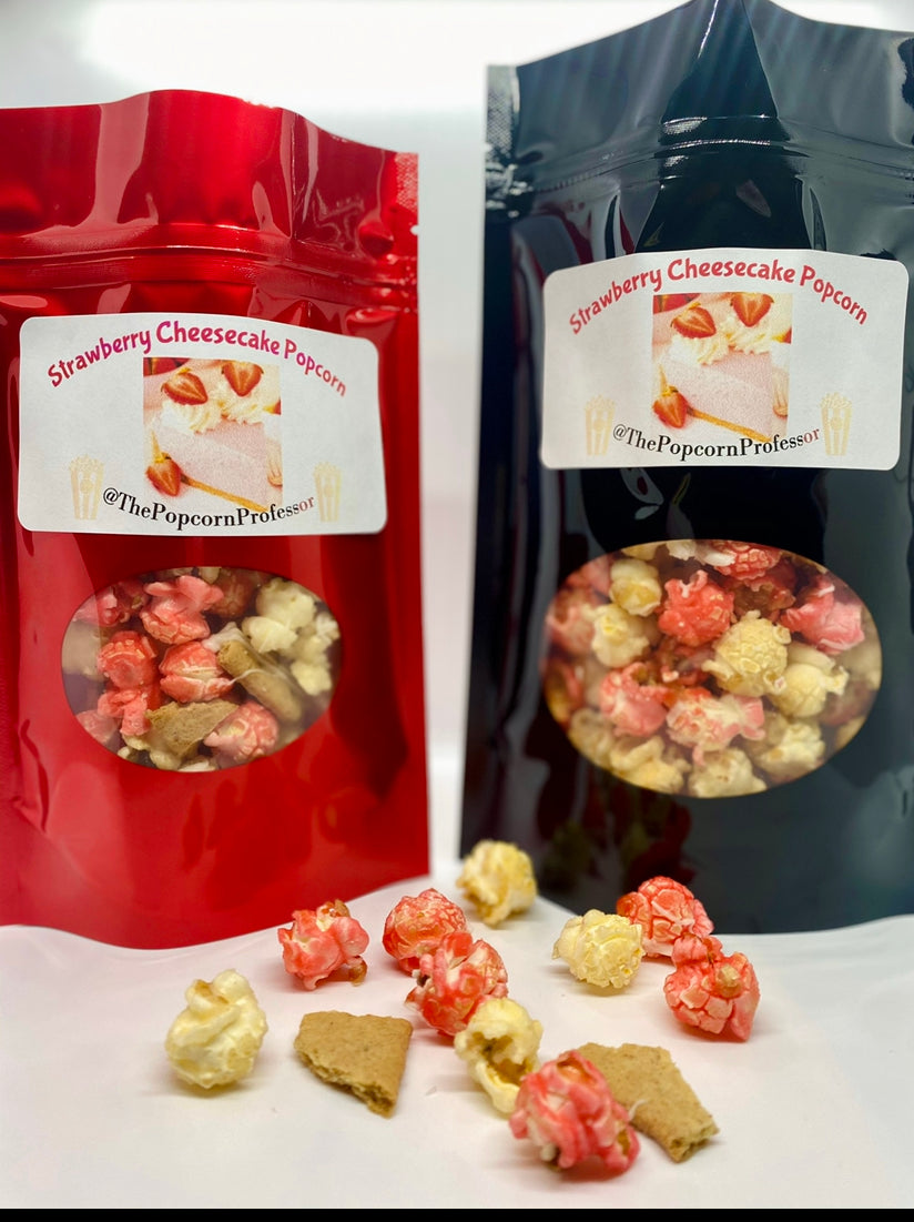 Start your own popcorn business or create a new treat for your special events! Add the most requested Strawberry Cheesecake Gourmet Candied popcorn to your treat menu, make it for friends and family or create fun popcorn experiences with your children!